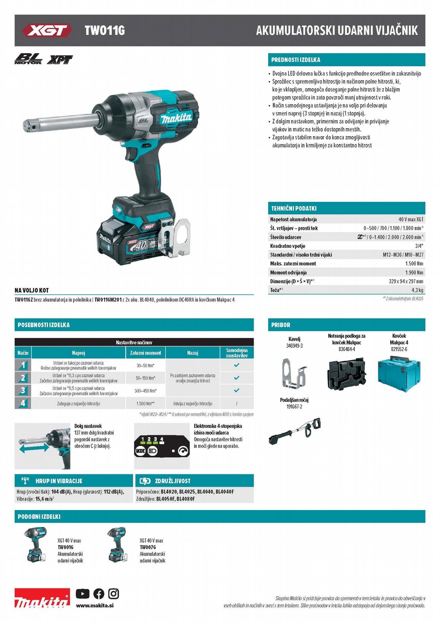 • Akumulatorski udarni odvijači s 4 načina rada